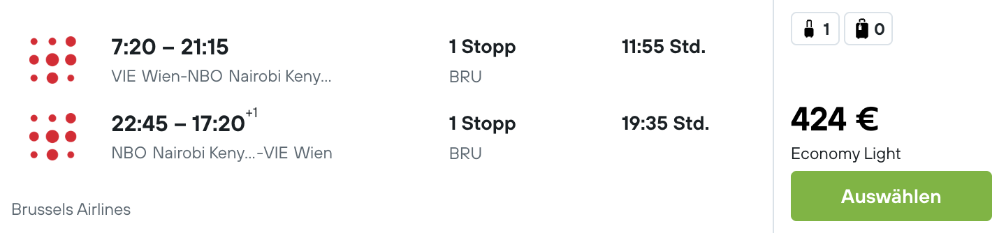 Zum Bestpreis von 424 € geht's im März los nach Nairobi ab Wien. Durchgeführt werden die Flüge von Austrian Airlines.