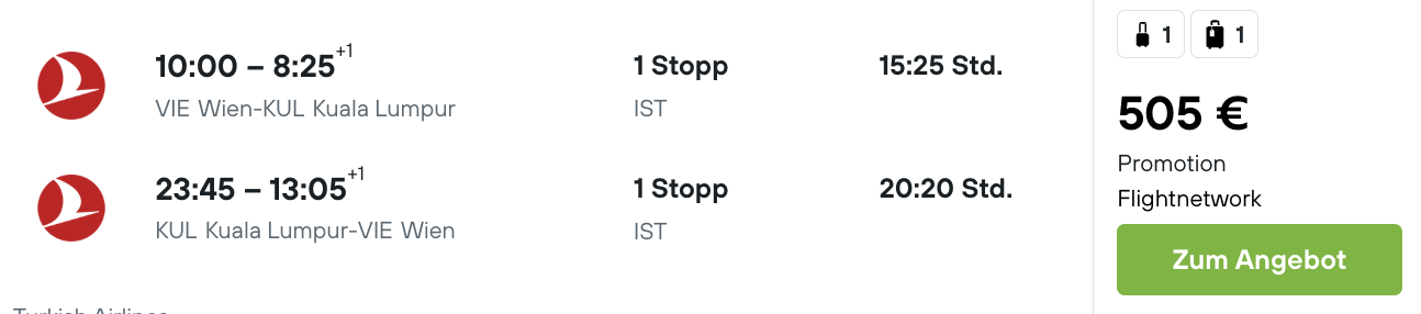 💡 Tipp: Wenn ihr mit Aufgabegepäck reisen möchtet, können wir euch noch diesen Deal von Turkish Airlines empfehlen. Ihr findet ihn ebenfalls, wenn ihr dem Link folgt und etwas weiter runter scrollt.