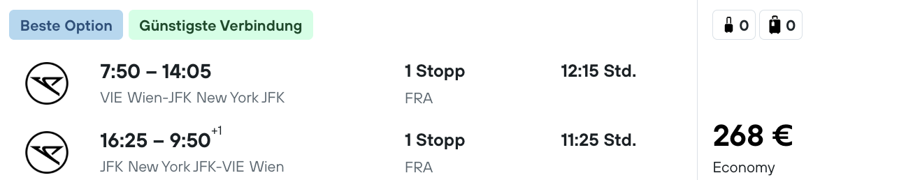 Kurz und knapp: Ein sehr guter Preis für Flüge nach New York. Beachten müsst ihr bloß, dass im Basispreis nur kleines Handgepäck inkludiert ist.