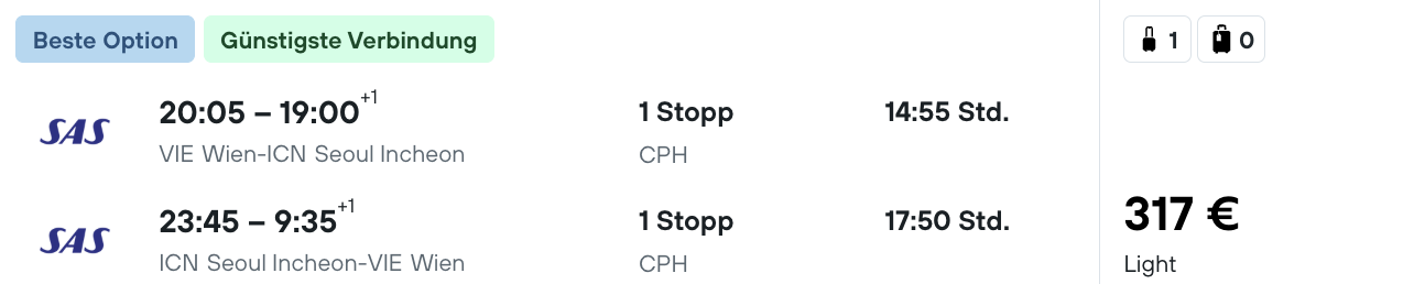Wow, das ist echt ein krasser und extrem seltener Preis für Flüge nach Ostasien: Für nur knapp über 300 Euro könnt ihr nach Südkorea und zurück fliegen, mit der skandinavischen SAS!