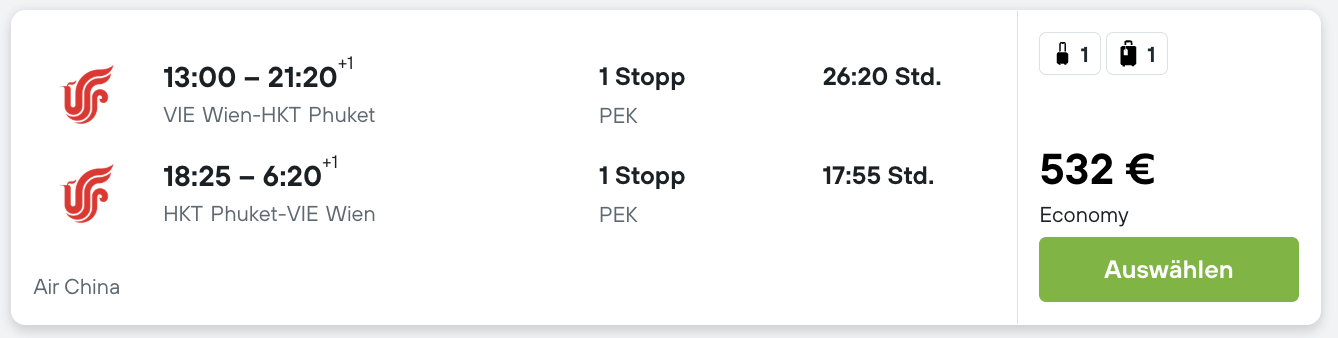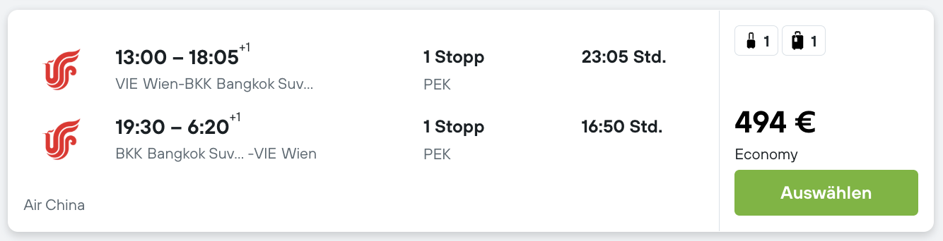 👎 die Flugzeiten nicht supergut, aber wenn ihr den langen Aufenthalt von 5 bis 20 Uhr wählt und die visafreise Einreise verlängert wird (gilt laut unseren Infos vorerst bis Ende des Jahres), könnt ihr die Zeit nutzen, um einen ersten Eindruck von Peking zu gewinnen