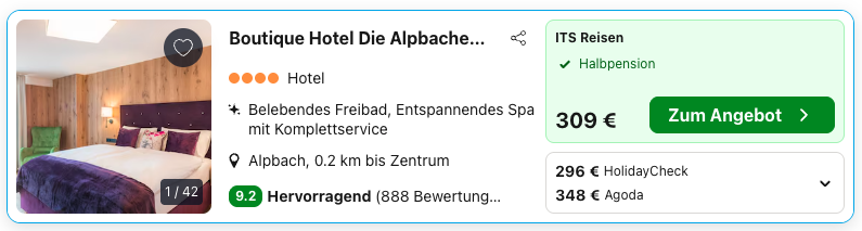 Während ihr bei diesem Deal für die Übernachtung zu zweit ab nur 239€ zahlt (zum Beispiel mit Anreise am 20.11.), sind es woanders gleich mal 296€.