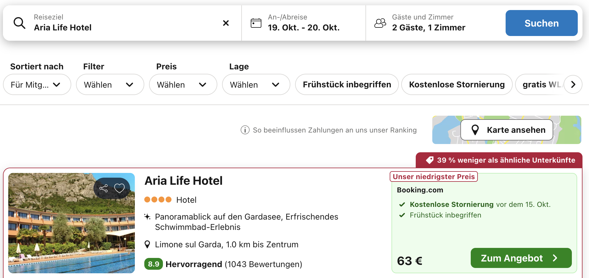 Trivago ist eine Preissuchmaschine und vergleicht alle Preise auf dem Markt, daher kann es sein, dass euch ein anderer Preis bzw. auch ein anderer Veranstalter angezeigt wird, nachdem ihr euch weiterleiten lassen habt. Denn überlegt mal, wie viele Zimmer ein Hotel zum günstigsten Preis hat und wie viel tausend User durch uns innerhalb von kurzer Zeit darauf zugreifen können bzw. buchen. Daher heißt der beste Tipp schnell sein, gerade wenn es sich um kleinere Hotels oder gar Ferienwohnungen handelt, die Ruck Zuck ausgebucht sind.