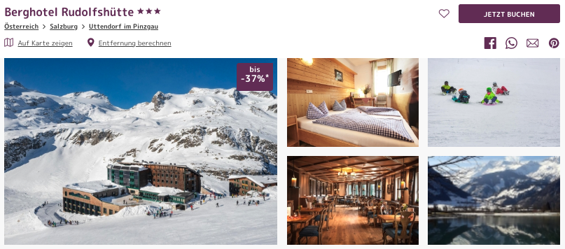 Das Berghotel befindet sich inmitten des Nationalparks Hohe Tauern und auf 2.315 Metern Höhe, erreichbar ist das Hotel lediglich über die Bergbahn. Dafür könnt ihr vom Hotel, welches sich in einem für Schneesicherheit bekannten Skigebiet befindet, aus direkt auf die Piste starten. Vor Ort erwarten euch gemütlich eingerichtete Zimmer und ein Wellnessbereich mit beheiztem Pool, Sauna, Familiensauna, Wärmeliegen und Tepidarium.