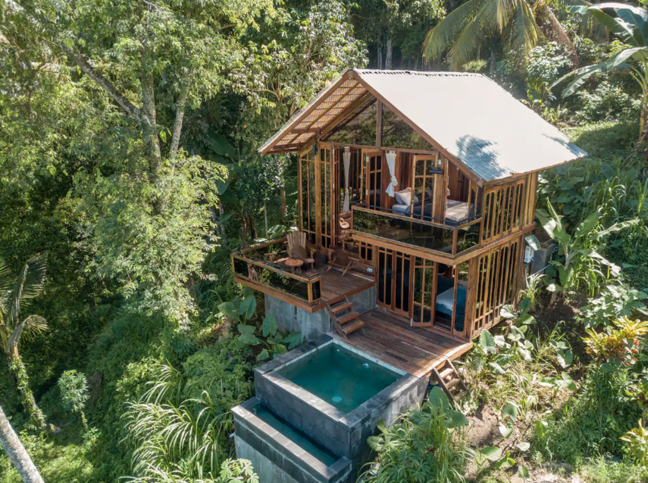 Heute haben wir eine weitere bezaubernde Villa entdeckt! Mitten im balinesischen Dschungel findet ihr dieses schöne Holzhaus mit GlaswĂ€nden und einem privaten Swimmingpool. An diesem idyllischen Ort könnt ihr euch vollkommen entspannen! Ăber Airbnb könnt ihr hier fĂŒr unglaubliche 28 ⏠pro Person buchen (bei 4 Personen).