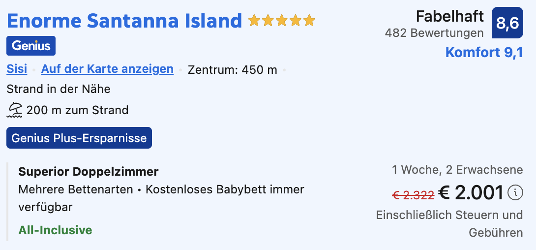 🗓️ Bestpreis: Wie immer bei Griechenland-Angeboten gibt es die besten Preise in der Vorsaison. Wir haben den Bestpreis im April und bis Mitte Mai entdeckt. Den Sommer gibt es gegen Aufpreis und zum Oktober wieder preiswerter.