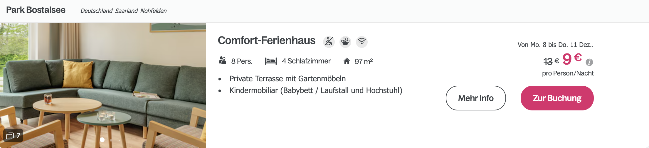 Preis pro Person & Nacht im Ferienhaus in Deutschland, Belgien, Frankreich, Dänemark oder den Niederlanden 🤯