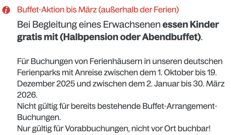 ⚠️ Nach der Weiterleitung könnt ihr einfach nach den günstigsten ober beliebtesten Angeboten filtern, einen Ferienpark auswählen und die Personenzahl entsprechend anpassen. 🧑🧑🧒🧒