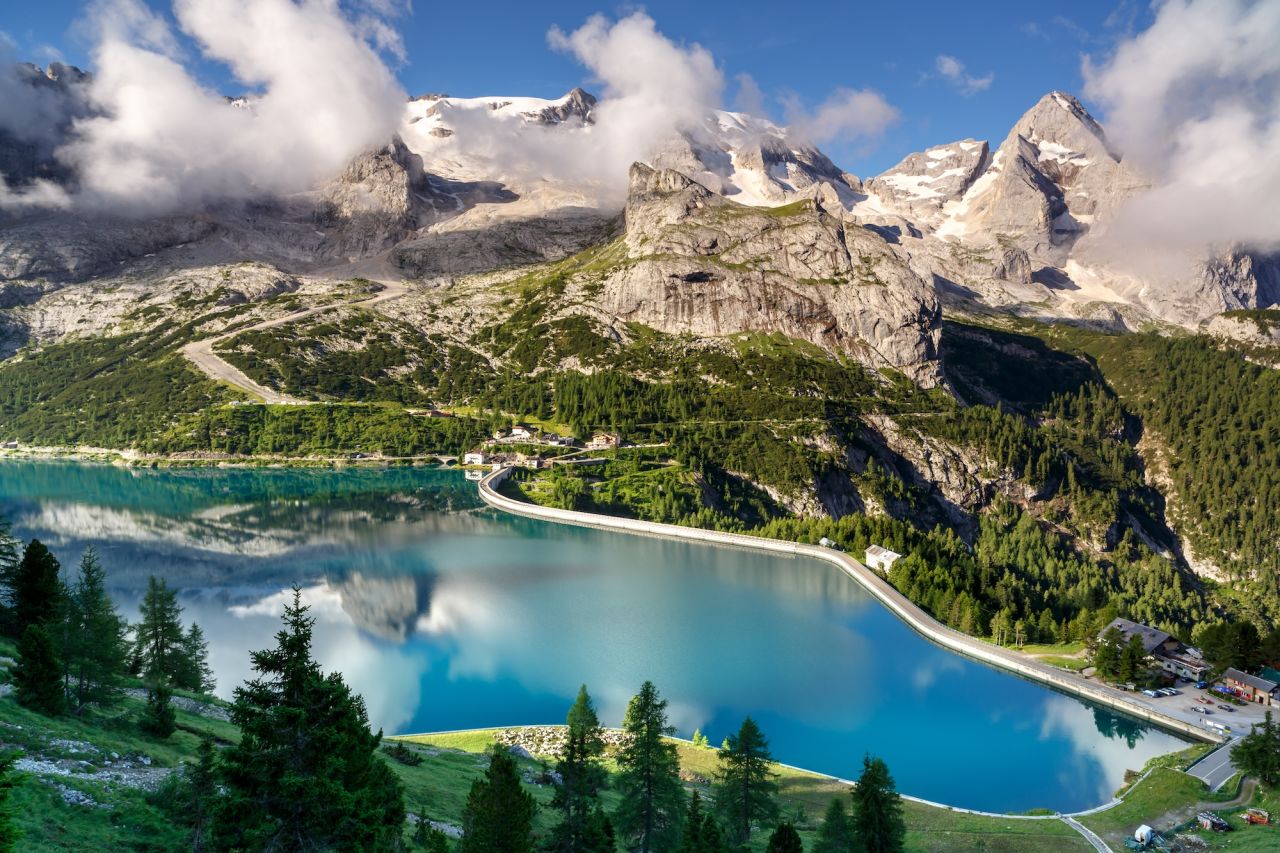 Bei uns vergleichsweise unbekannt ist der Lago di Fedaia, ein Speichersee im Trentino, den ihr auf dem ersten Bild seht. Von eurem 4* Hotel ist dieser nur etwa 20 Fahrminuten entfernt. Für drei Nächte inklusive Halbpension zahlt ihr ab nur 169 € pro Person, woanders dagegen nur mit Frühstück schon über 300 €.