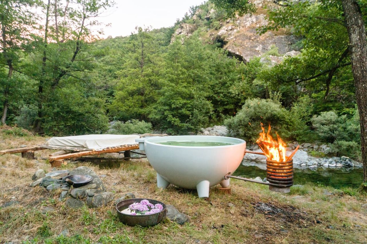 Wir haben fĂŒr euch ein komfortables Zelt in Tiglieto, Ligurien entdeckt. Hier bekommt ihr nicht nur Camping mit dem gewissen Glamour-Faktor, sondern auch noch eine eigene Outdoor-Badwanne, die mit Flusswasser befĂŒllt und mit Brennholz beheizt wird. Ein richtig cooles Ăbernachtungserlebnis!