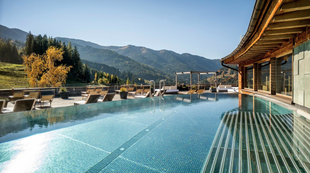 Was noch zu einer perfekten Auszeit gehört? Ein schicker Wellnessbereich! Und auch in diesem Fall bleiben im Hotel Forsthofalm keine Wünsche offen: Euch erwarten ein 32°C warmer Rooftop-Pool, eine Bio-Kräutersauna und eine Finnische Sauna, ein Sole-Dampfbad, und eine Lounge mit Kamin.