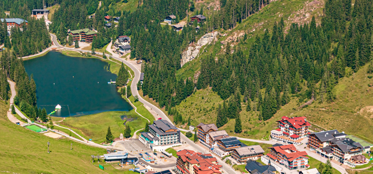 Das Almdorf liegt auf ca. 1.350 Metern. Von eurem ca. 35 m² großen 2-Raum-Appartement mit Kitchenette lauft ihr nur ein paar Minuten, um euch im kühlen See zu erfrischen.