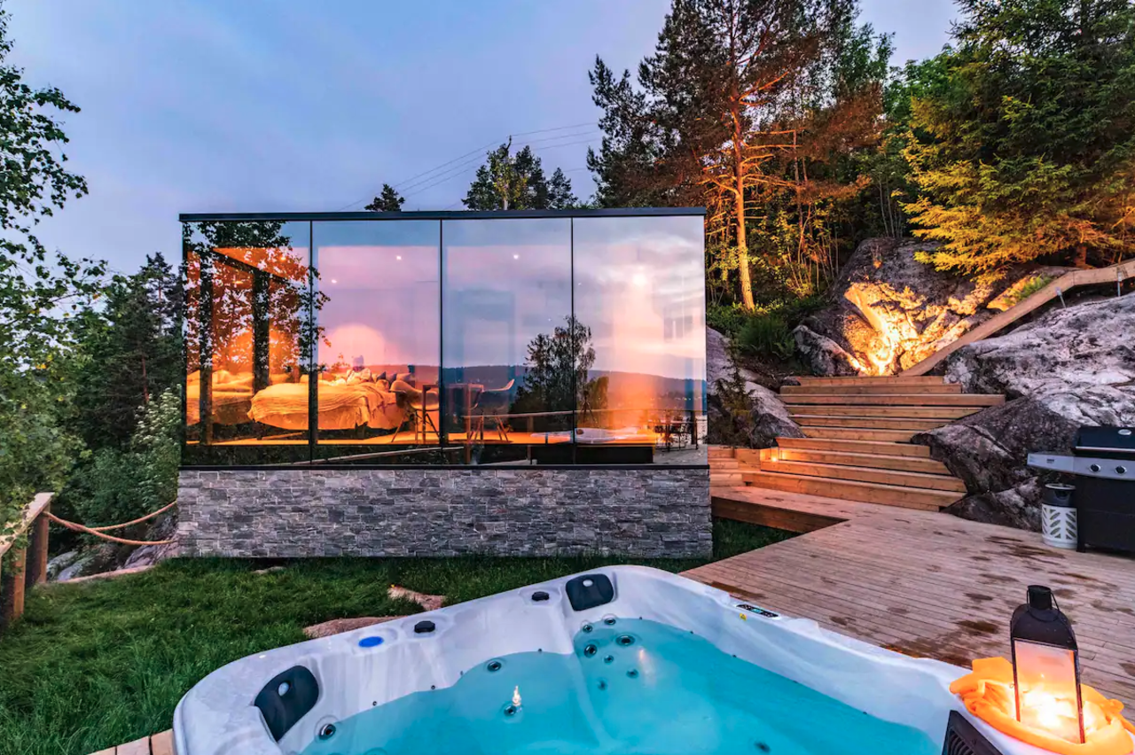 Ein wunderschönes Glashaus im futuristischen Look bietet die Übernachtung eurer Träume! Die Aussicht ist auf jeden Fall unbezahlbar. Außerdem könnt ihr hier im warmen Wasser sprudeln, denn ihr habt Zugang zu eurem privaten Whirlpool.