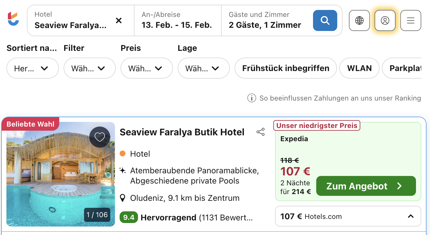 Den günstigsten Preis findet ihr aktuell bei Expedia, lasst euch einfach dorthin weiterleiten.