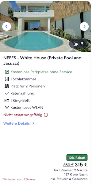Wenn ihr lieber die Suite mit Privatpool buchen wollte, ist das bereits ab 79€ pro Person & Nacht möglich. Scrollt einfach noch etwas weiter nach der Weiterleitung und wählt folgendes Zimmer aus:
