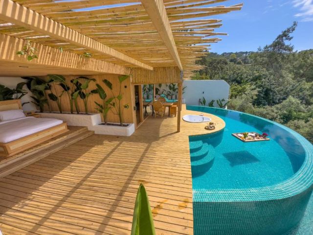 Es gibt verschiedene Zimmer zur Auswahl: Das Günstigste ist ein Apartment mit privatem Whirlpool auf der Terrasse, was ihr schon für 54€ pro Person & Nacht zur Nebensaison bekommt. Wer etwas tiefer in die Tasche greifen kann, findet noch luxuriösere Suiten z.B. mit großem Panorama-Privatpool in der Auswahl der Zimmer. 💦