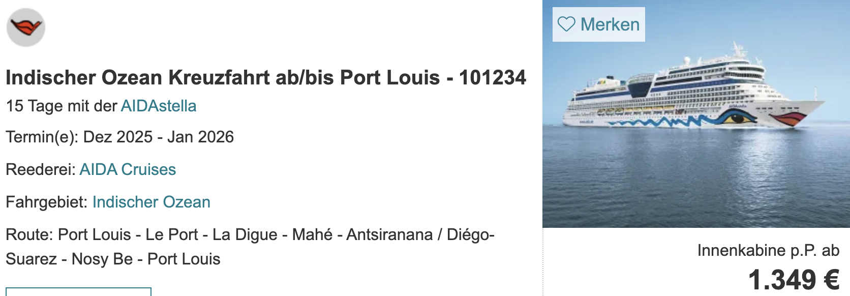 Richtig schöner Deal: Zunächst mal habt ihr eine Kreuzfahrt auf der AIDAstella zu lauter echten Traumzielen: Seychellen (sogar inkl. La Digue), Madagaskar und La Réunion. Es gibt mittlerweile überraschend wenige Kreuzfahrten, die diese Kombi ansteuern und wenn, dann sind es meist Weltreisen oder richtig teure Luxusschiffe.