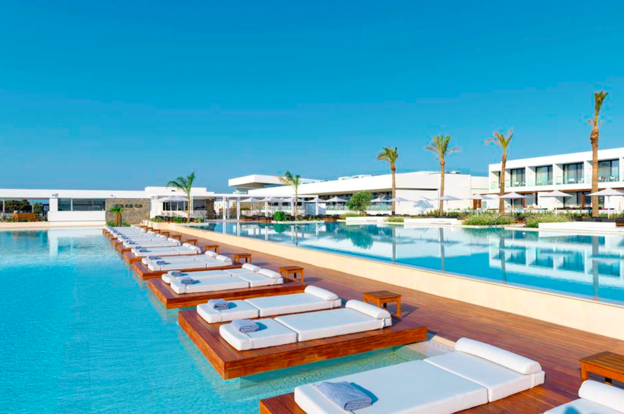Das 5* Resort liegt direkt an einem ruhigen Strand, der für seine Qualität mit der blauen Flagge der EU ausgezeichnet wurde. Auch die Pool-Anlage mit insgesamt 3 Pools ist nicht verkehrt, denn dort chillt ihr auf bequemen Liegen direkt am und über dem Wasser. Zur Anlage gehören außerdem sieben Restaurants und vier Bars. Die Doppelzimmer sind hell und modern eingerichtet und bieten mit etwa 30qm ausreichend Platz.