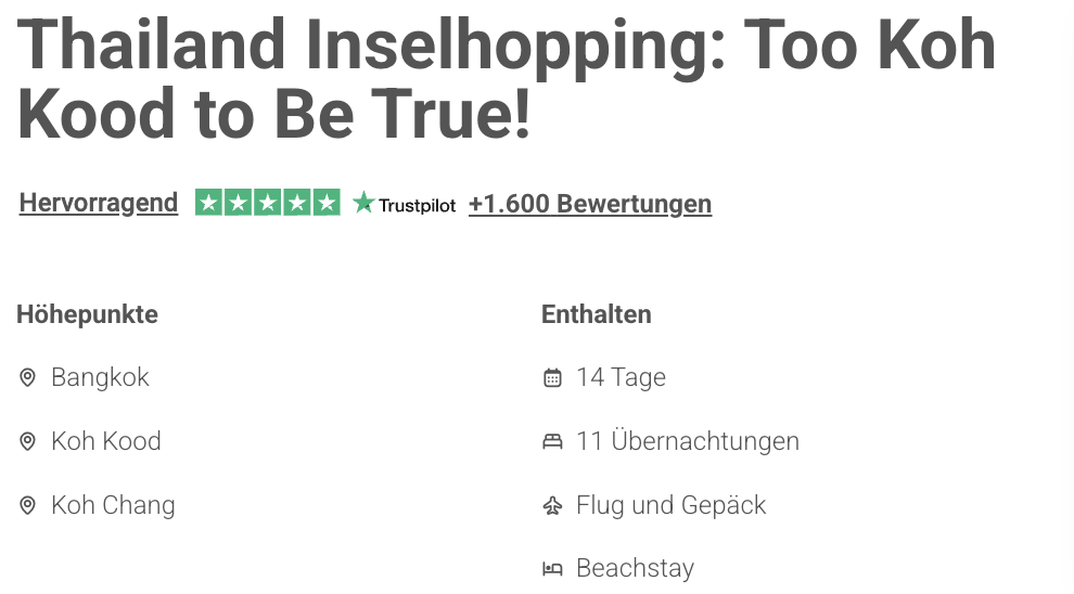 So könnt ihr euch z.B. den Traum einer 14-tägigen Thailandrundreise inkl. Flügen, Übernachtungen & Transfers ab nur 1.124€ p.P. oder vieler weiterer Rundreisen durch Asien, Afrika, Australien, USA oder Südamerika erfüllen und habt in allen Paketen natürlich alle wichtigen Leistungen inkludiert! 😍
