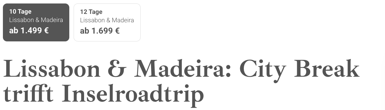 Fliegt für 10 Tage (9 Nächte vor Ort) zuerst nach Lissabon und anschließend nach Madeira und entdeckt die Schönheit des Landes am Atlantik. In Lissabon erkundet ihr dank der 72h-Lisboa-Card die Stadt ohne Probleme und seit die gesamte Zeit voll flexibel im Programm. Schlendert durch die bunten Gassen der Stadt, genießt die Sonnenuntergänge zwischen Mosaikfliesen und den unverkennbaren Straßenbahnen und lasst euch die Spezialitäten des Landes schmecken. 🤤