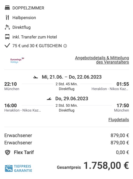 Das überragend bewertete und zudem noch super stylische 4* Paralos Irini Mare Hotel befindet sich bei Agia Galini. Zum Beispiel im Juni könnt ihr jetzt ab 879€ 8 Tage vor Ort verbringen. Dafür bekommt ihr die Halbpension und Flüge sowie der Transfer sind auch schon mit dabei – nice! 🔥.
