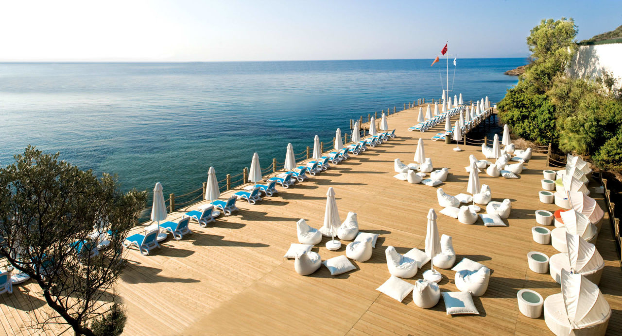 Das Lifestyle Hotel an der Türkischen Riviera verfügt über einen Pool mit Rutschen und einen 3500 m² großen Außenpool, sowie viele Wassersportaktivitäten, da es in direkter Strandlage gelegen ist.