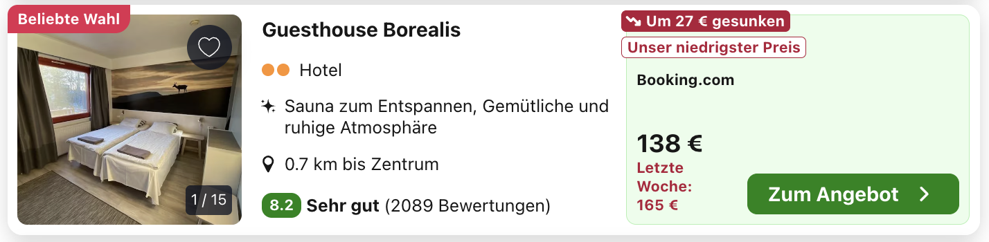 heute haben wir einen ganz besonderen Deal für euch. Es geht nämlich mit dem Santa-Claus-Express 🎅 von Helsinki nach Rovaniemi ins Weihnachtsmanndorf bzw. an den Polarkreis ❄️. Ihr fahrt also einmal quer mit dem Zug durch ganz Finnland 🇫🇮. Das ganze haben wir mit günstigen Flügen nach Helsinki und zurück von Rovaniemi kombiniert. Ebenfalls inklusive sind zwei Übernachtungen in Helsinki und eine in Rovaniemi.